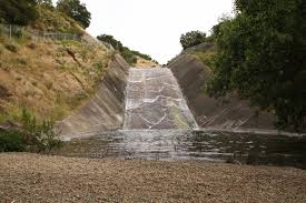 Every ten yards or so there seemed to be a small culvert sticking out from the surface of the spillway sightly. It stuck out far enough to cause the flowing water to spray up as it hit, before continuing down to the bottom.