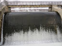 The shelter house we were making use of was just inside the park near the west end of the dam. The dam itself had an open concrete spillway which was probably a hundred feet wide or more and carried water from the shore over the dam and down the north side of the dam to where it dumped into a pool of water and a creek which carried the water away. The amount of water going over the spillway was uncontrolled. It just depended on how much rain there had been and how high the lake was.
