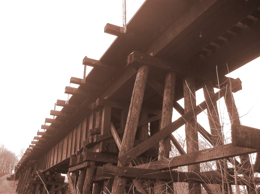 The best idea seemed to be avoiding the trees that grew along the side of the tracks. I hung out and could see a clearing coming up. I crouched on the ladder, ready to leap……….just as we got to the clearing………..right before I jumped……..I saw that the clearing was……….actually a bridge over a creek.